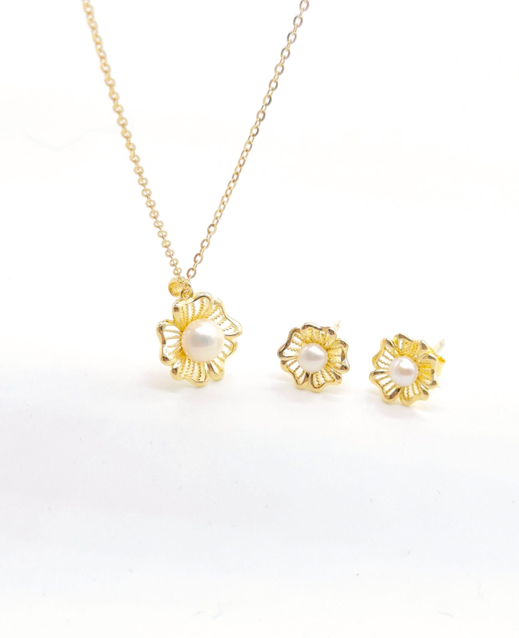 Conjunto Collar con Pendientes Perlas