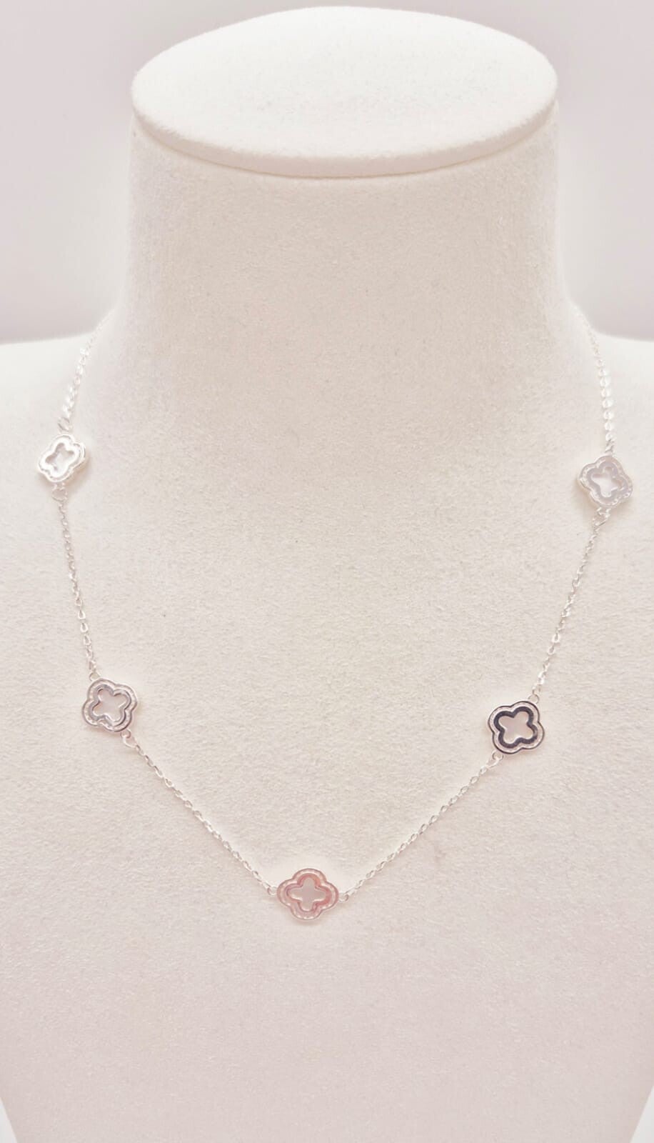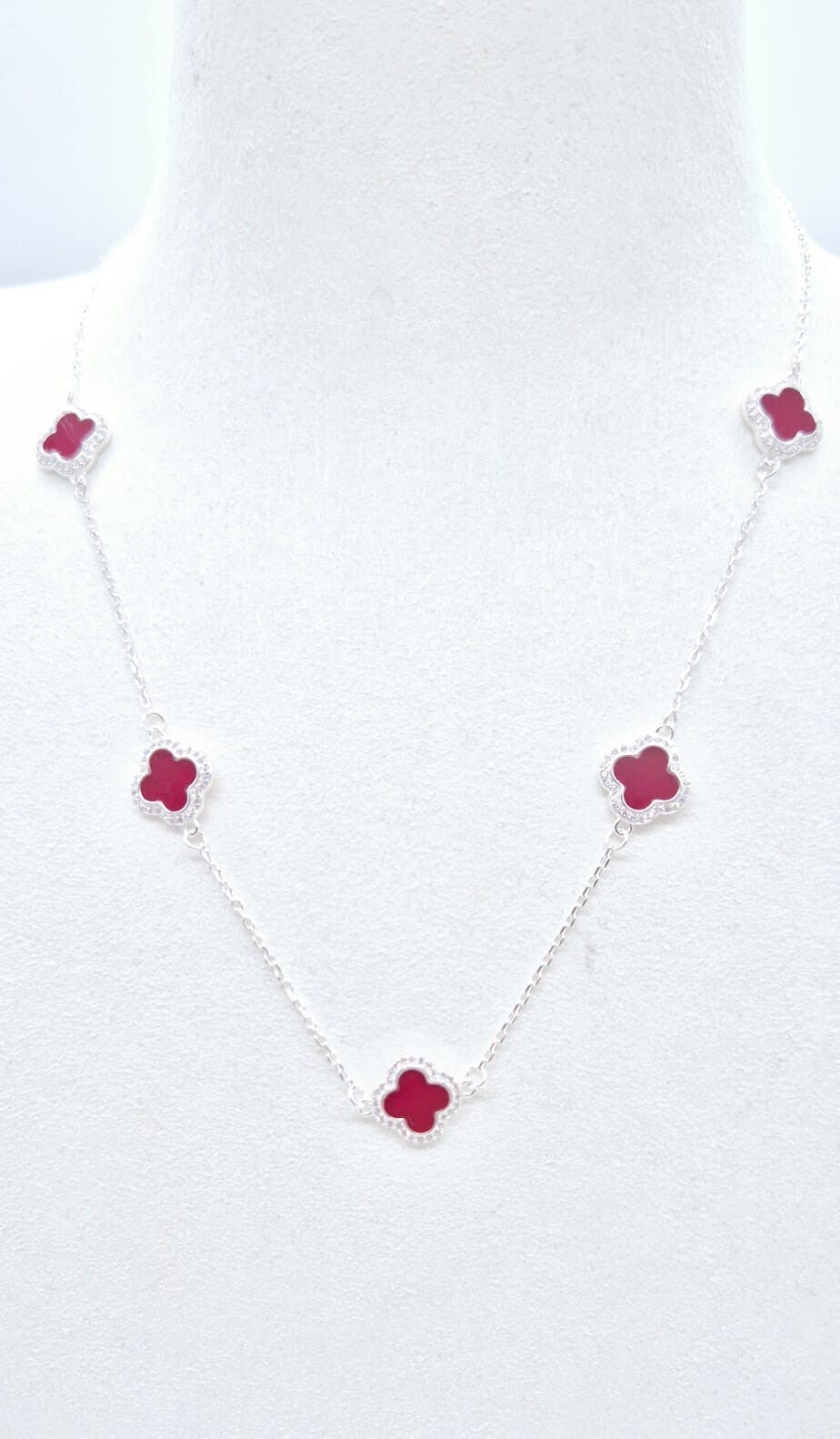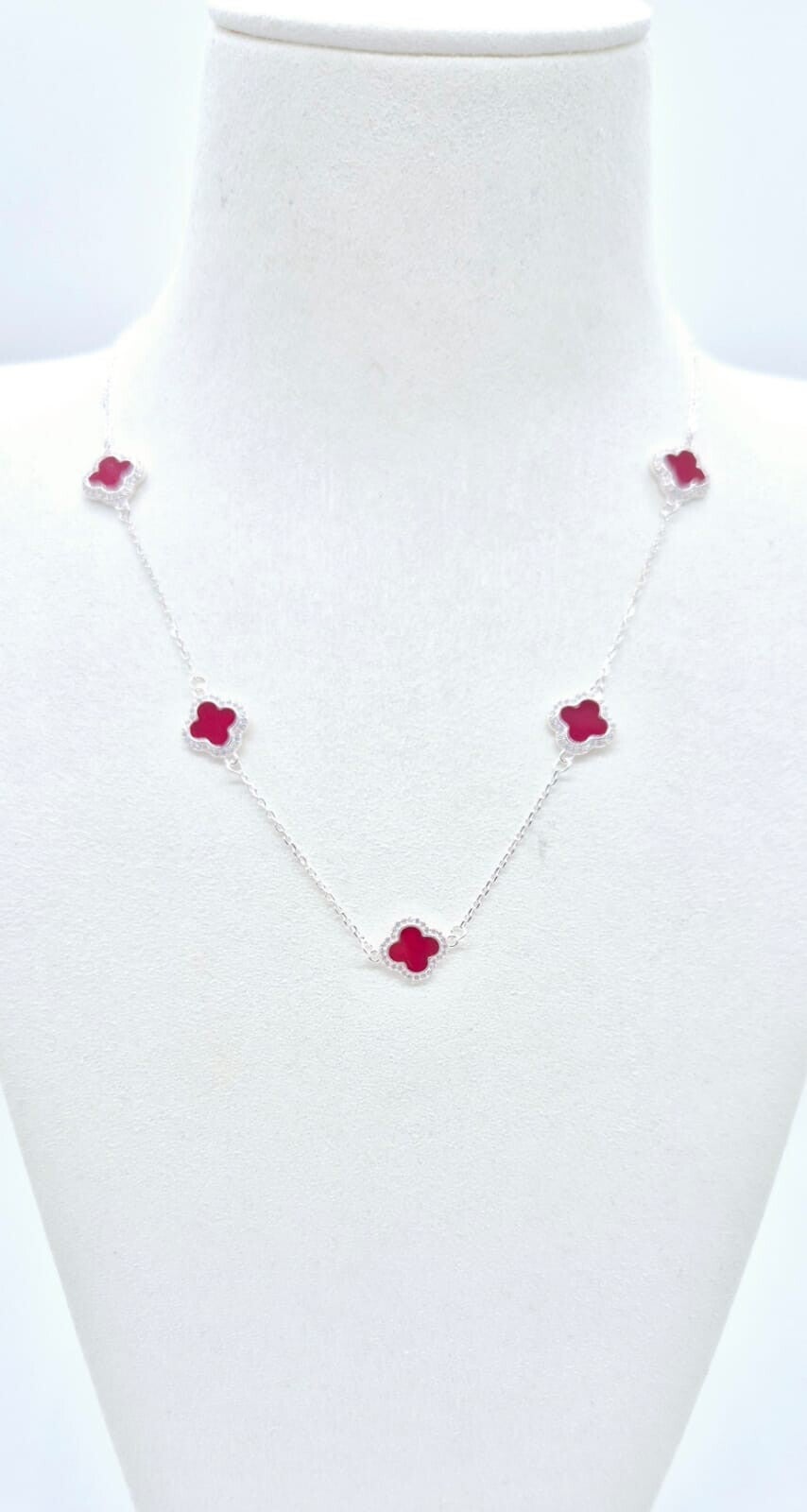 Collar de trébol de cuatro hojas en plata de ley 925, colores disponibles blanco, rojo, verde, amuleto de la suerte, joyería minimalista, regalo para ella.