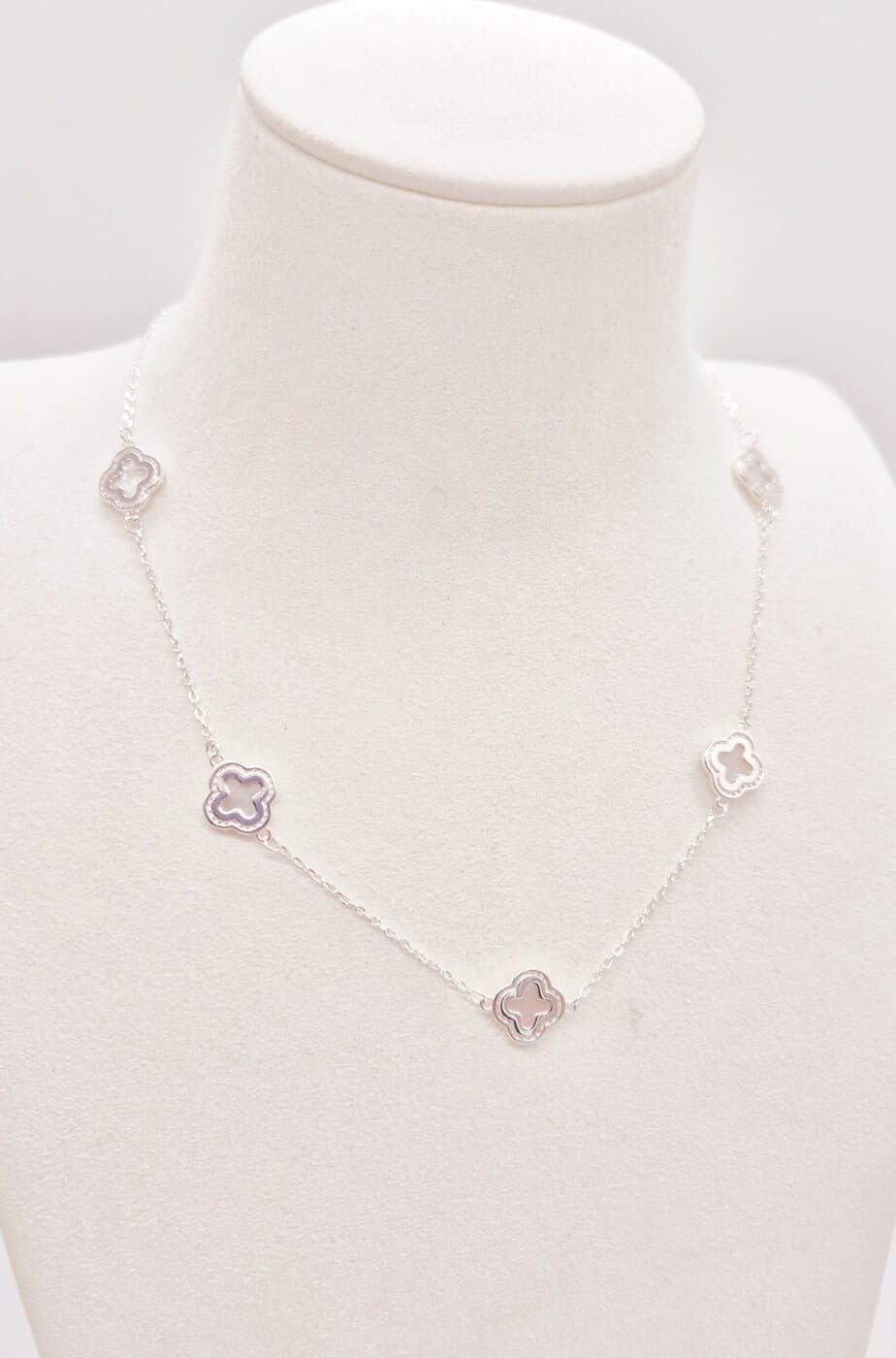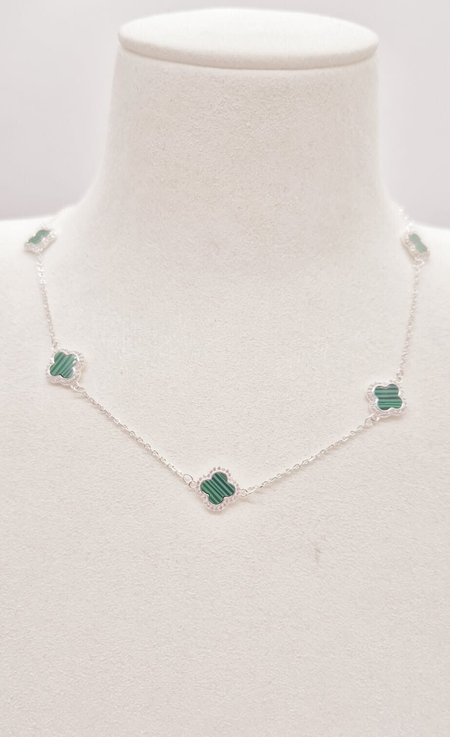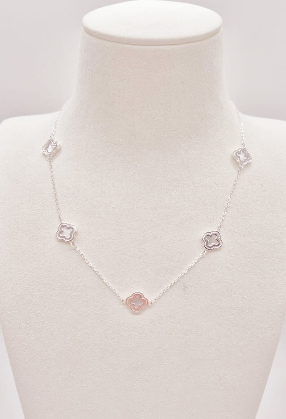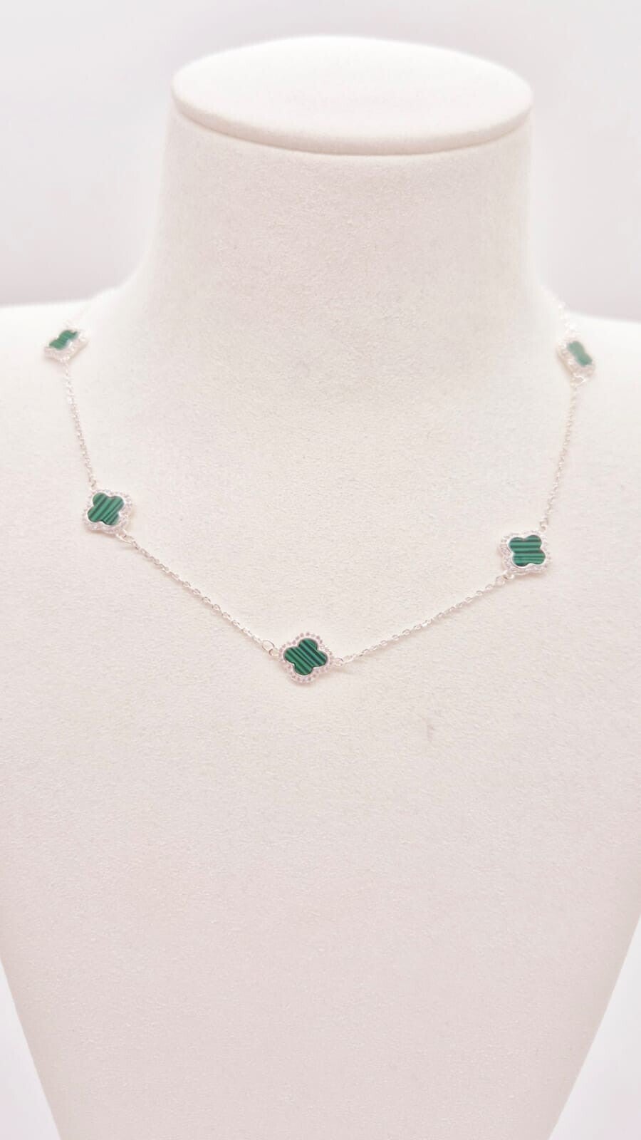 Collar de trébol de cuatro hojas en plata de ley 925, colores disponibles blanco, rojo, verde, amuleto de la suerte, joyería minimalista, regalo para ella.